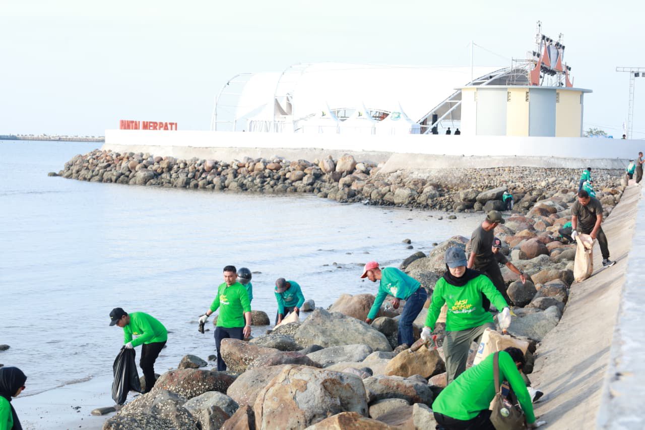 Aksi bersih pantai dihadiri oleh Kepala Pusat Pengendalian Lingkungan Hidup (Kapusdal LH) Sulawesi dan Maluku – Kementerian Lingkungan Hidup/Badan Pengendalian Lingkungan Hidup Republik Indonesia, Dr. Azri Rasul.