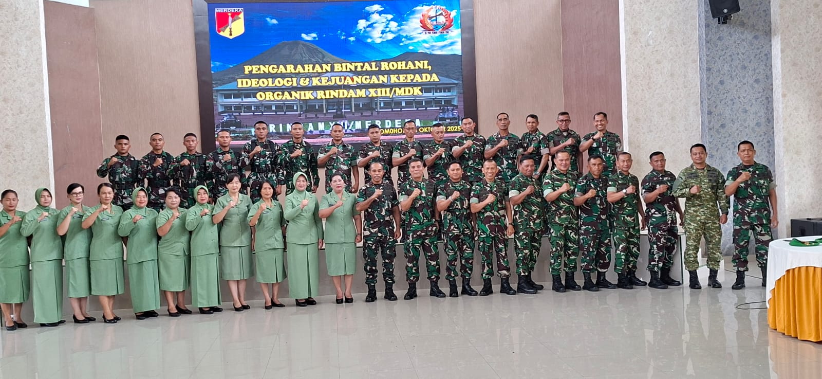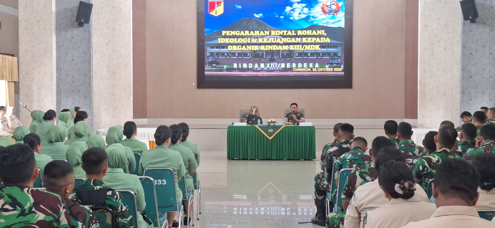 STARNEWSID.COM, TOMOHON —- Dalam upaya memperkuat kualitas mental, ideologi, dan semangat juang prajurit, Badan Pembinaan Mental dan Sejarah Kodam (Bintaljarahdam) XIII/Merdeka menggelar kegiatan Pembinaan Mental Rohani, Ideologi, dan Kejuangan Triwulan IV Tahun 2025 di Makorindam XIII/Merdeka. Bertempat di Aula Daan Mogot Rindam XIII/Mdk, kegiatan yang berlangsung pada Selasa (28/10/2025) ini menjadi momentum penting dalam membangun karakter prajurit yang beriman, berintegritas, dan berjiwa juang tinggi.