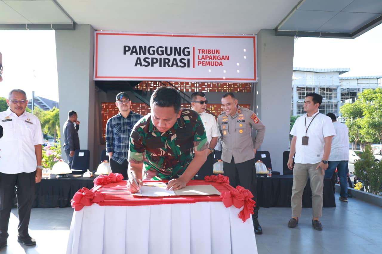 Peluncuran panggung aspirasi, ditandai dengan penandatanganan Komitmen Bersama pemanfaatan tribun Lapangan Pemuda sebagai Wadah Penyampaian Pendapat di Muka Umum.(*)