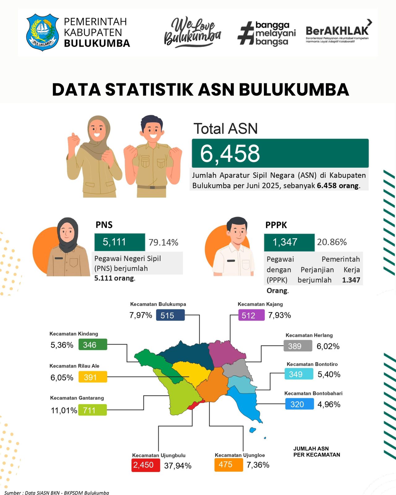 STARNEWSID.COM, BULUKUMBA — Pemerintah Kabupaten Bulukumba melalui Badan Kepegawaian dan Pengembangan Sumber Daya Manusia (BKPSDM) merilis Data Statistik terkait Aparatur Sipil Negara (ASN).