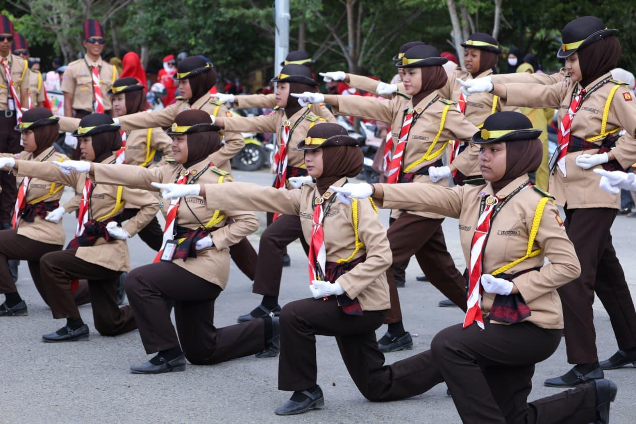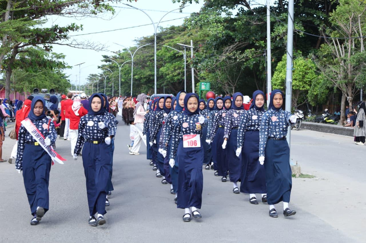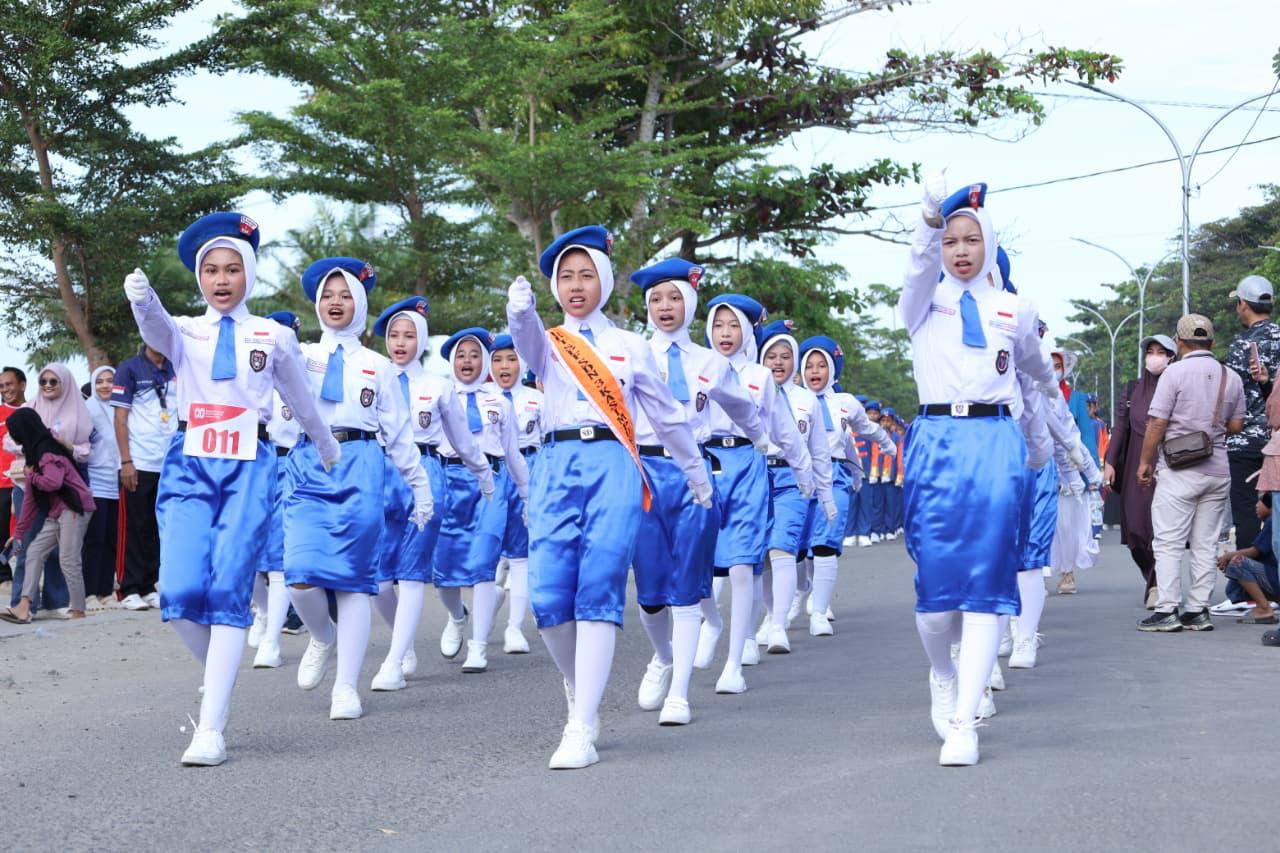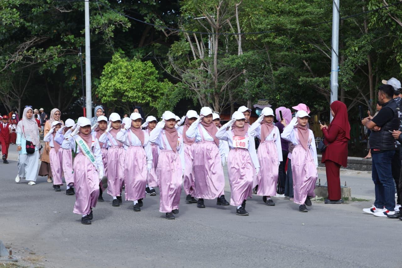 Sepanjang perjalanan, masyarakat tampak antusias memberikan dukungan kepada para peserta yang tampil penuh semangat dengan berbagai variasi gerakan baris-berbaris yang kreatif.