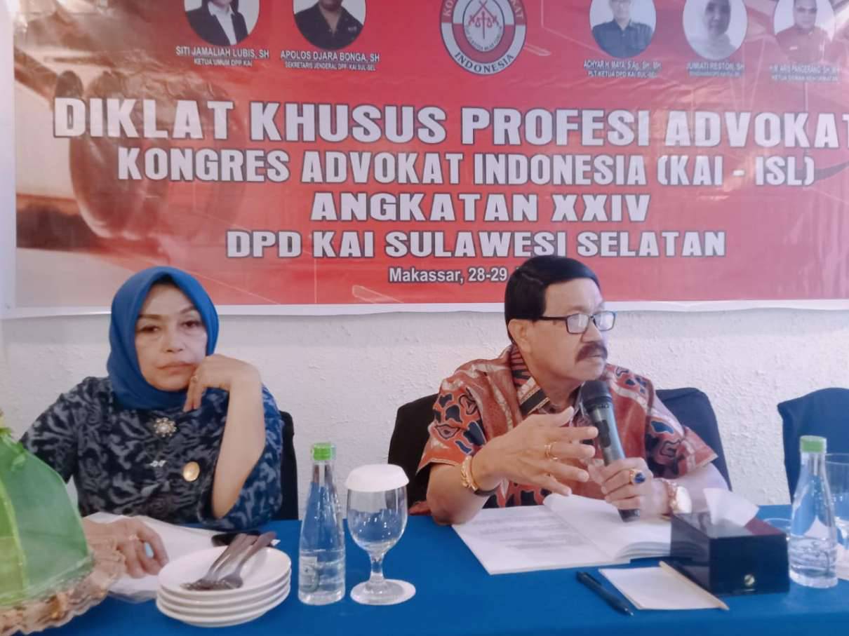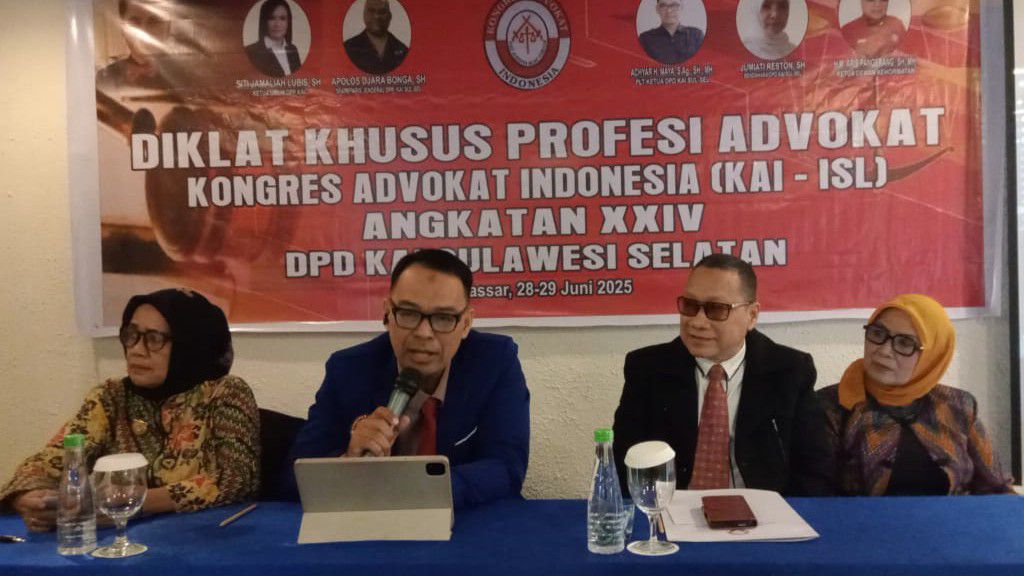 STARNEWSID.COM, MAKASSAR — Dewan Pimpinan Daerah Kongres Advokat Indonesia (DPD KAI) Sulawesi Selatan resmi membuka kegiatan Diklat Khusus Profesi Advokat (DKPA) Angkatan XXIV yang berlangsung selama dua hari, mulai 28 hingga 29 Juni 2025 di Hotel Kyriad Haka Makassar.