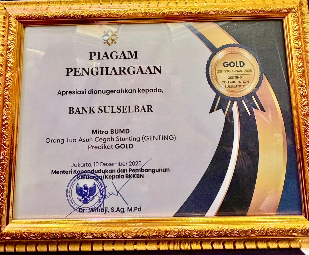 Pada kegiatan GENTING Collaboration Summit 2025 yang digelar di JS Luwansa Hotel Jakarta, dua mitra asal Bulukumba berhasil meraih Penghargaan GOLD, predikat tertinggi yang diberikan kepada mitra pentahelix yang berkontribusi signifikan dalam percepatan penurunan stunting.