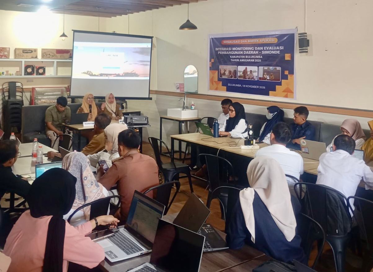 STARNEWSID.COM, BULUKUMBA — Badan Perencanaan Pembangunan, Riset, dan Inovasi Daerah (Bapperida) Kabupaten Bulukumba menggelar Sosialisasi dan Bimbingan Teknis (Bimtek) Aplikasi Integrasi Monitoring dan Evaluasi Pembangunan Daerah (SIMONDE). Kegiatan strategis ini berlangsung di DellPizza, Kelurahan Caile, Kecamatan Ujung Bulu., Selasa 18 November 2025.