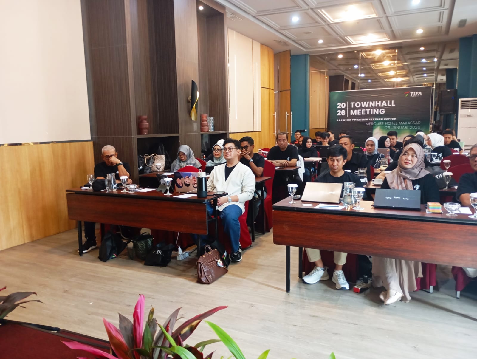 STARNEWSID.COM, MAKASSAR — CEO Tifa Tours & Travel, Arfa Azhary, menyatakan dedikasinya untuk meningkatkan standar pelayanan serta memperkokoh strategi operasional Tifa Group Holding Company. Pernyataan ini disampaikan dalam acara Townhall Meeting 2026 yang berlangsung di Hotel Mercure, Makassar, Senin (26/1/2026).