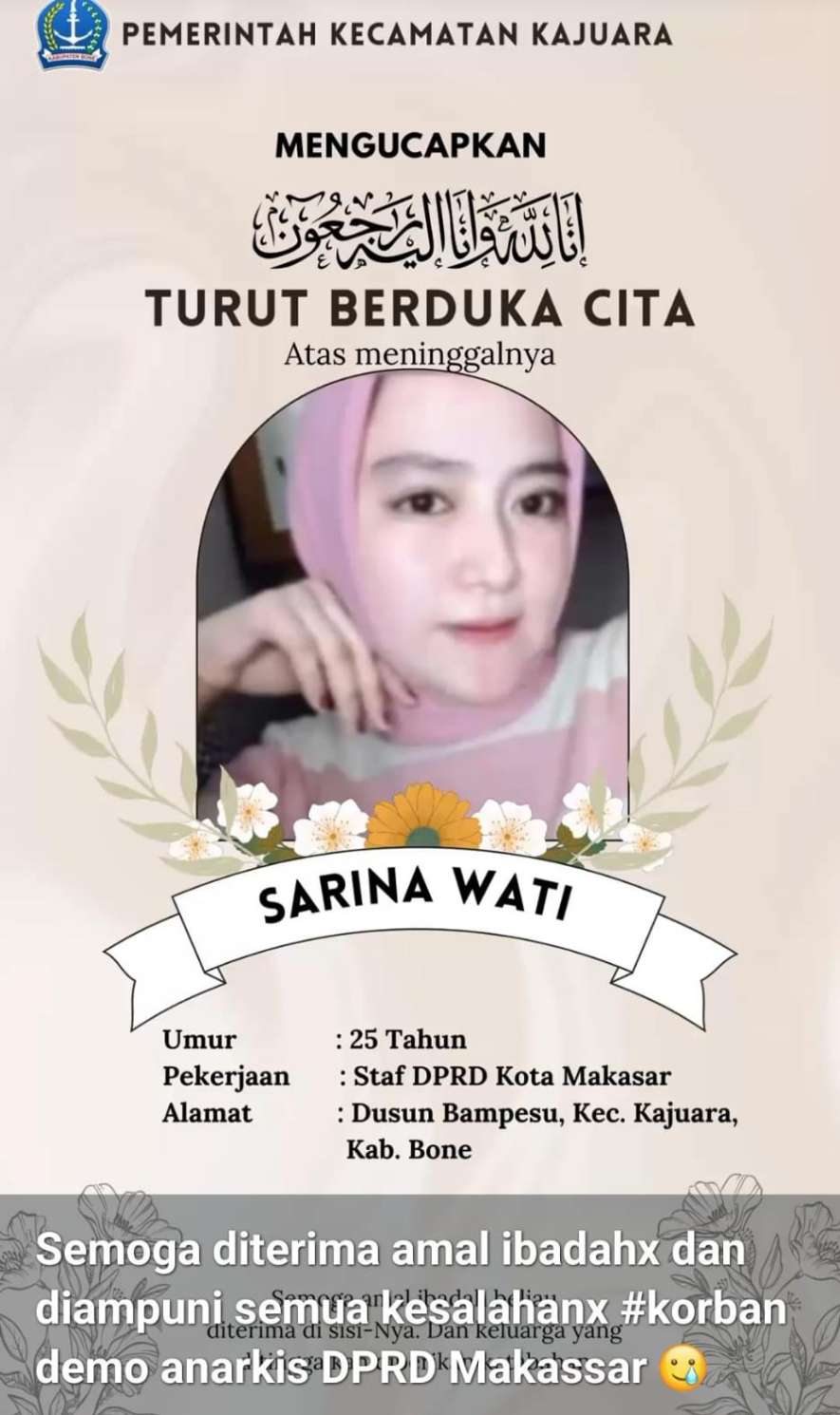 “Ada seorang perempuan, ditemukan di dalam gedung DPRD Makassar,” ujar seorang pria dalam video yang masif beredar.