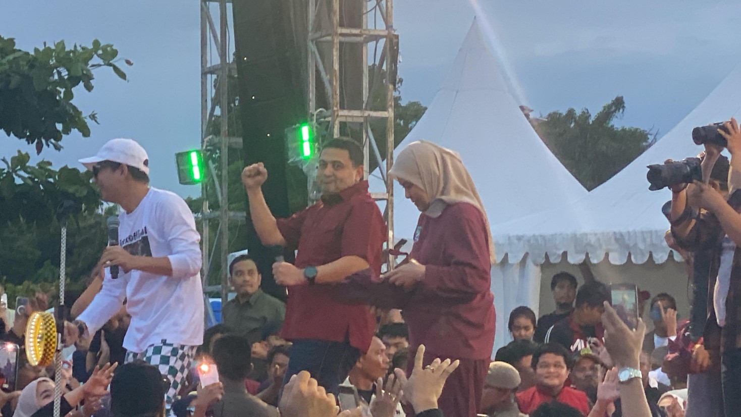 Acara syukuran tersebut diwarnai dengan suasana penuh kebersamaan dan perayaan. Meskipun diguyur hujan, para pendukung tampak antusias menikmati hiburan dari TIPE-X dan merayakan kemenangan Pilwalkot dengan bernyanyi serta berjoget bersama.