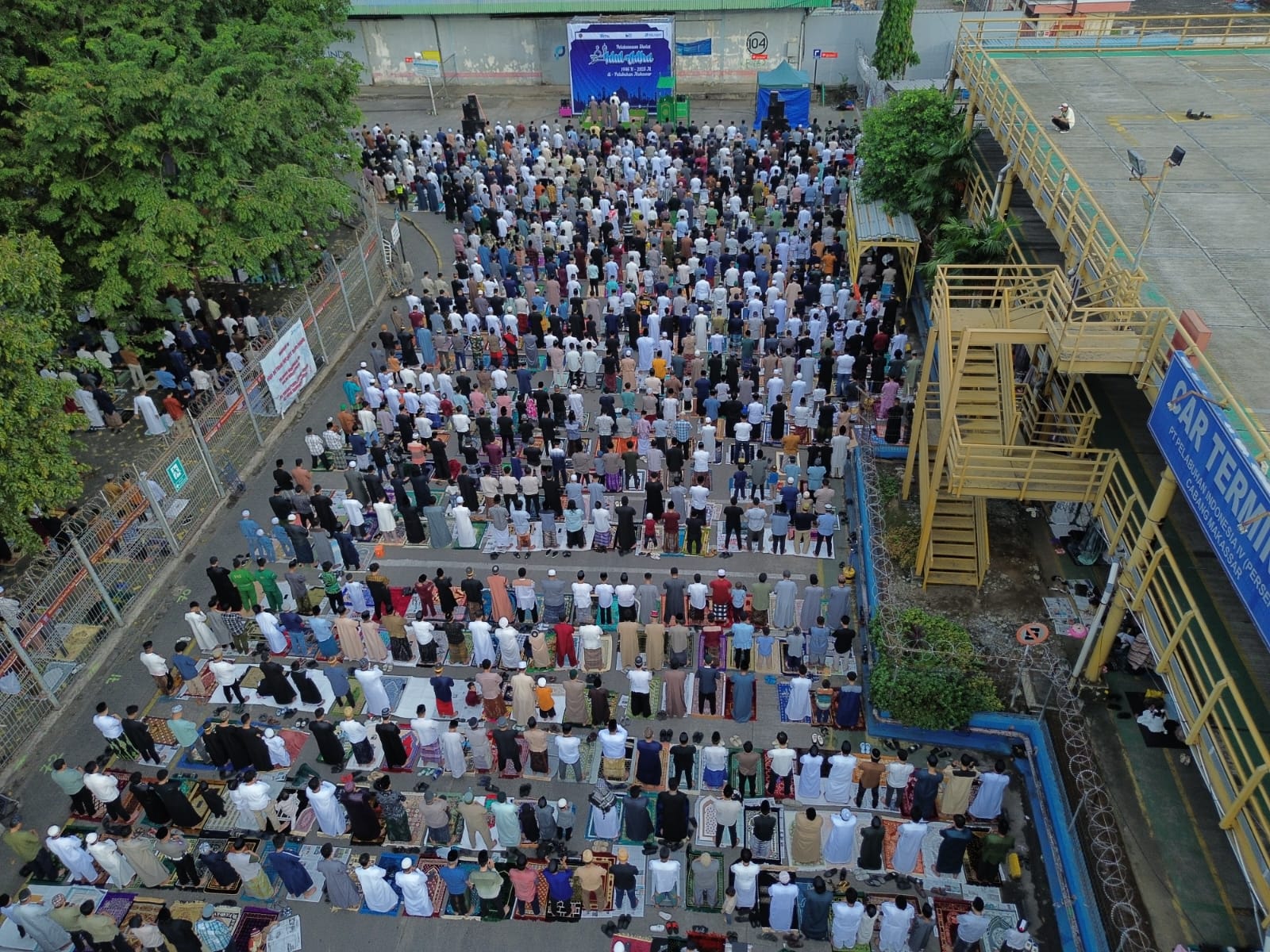 STARNEWSID.COM, MAKASSAR — PT Pelabuhan Indonesia (Persero) atau Pelindo Regional 4 menggelar pelaksanaan Sholat IdulAdha 1446 Hijriah/2025 Masehi di area Pelabuhan Makassar, Jumat pagi (6/6/2025). Kegiatan ini diikuti oleh insan Pelindo Group wilayah kerja Makassar, pekerja pelabuhan, mitra kerja, serta masyarakat sekitar pelabuhan.