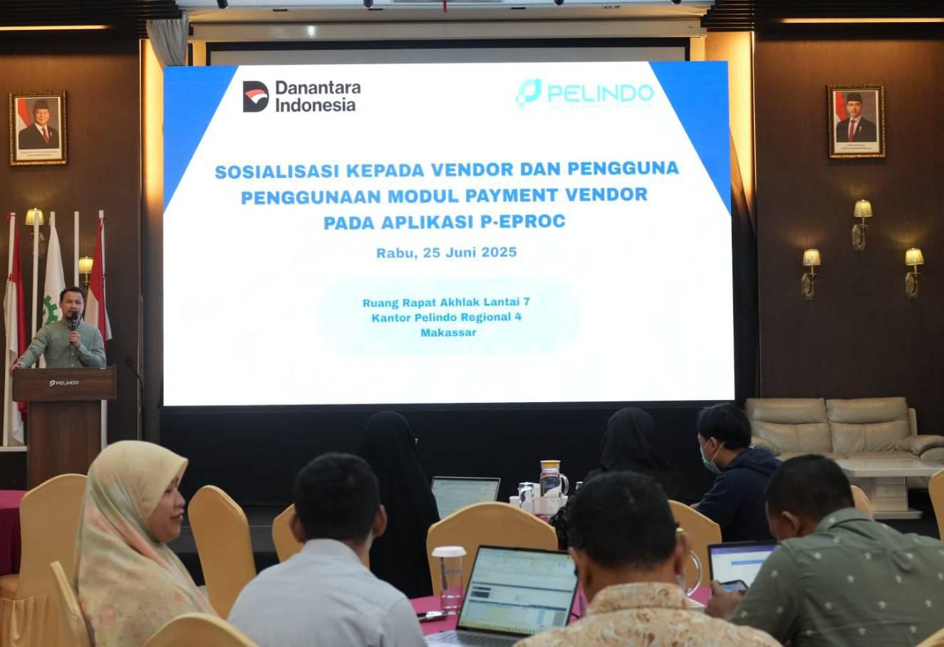 STARNEWSID.COM, MAKASSAR — Dalam rangka mendukung transparansi dan efisiensi proses pembayaran kepada mitra kerja, PT Pelabuhan Indonesia (Persero) atau Pelindo Regional 4 menyelenggarakan kegiatan Sosialisasi Penggunaan Modul Payment Vendor pada Aplikasi P-EPROC yang diikuti oleh para vendor di lingkungan Pelindo Regional 4.