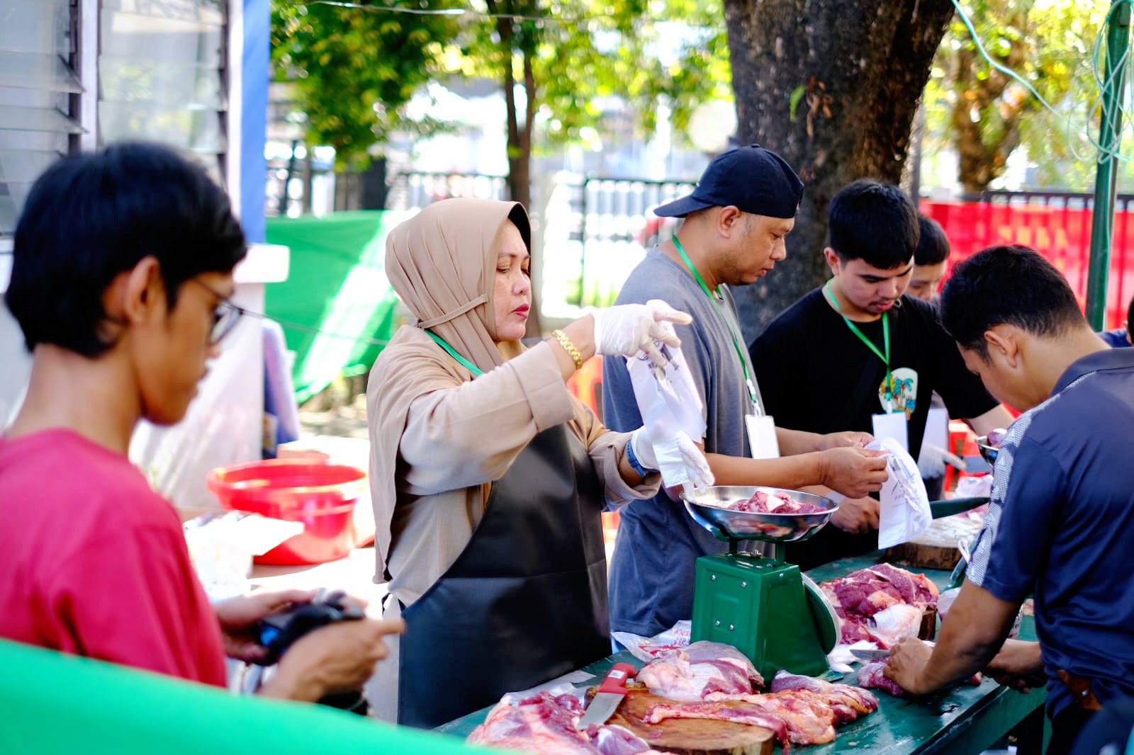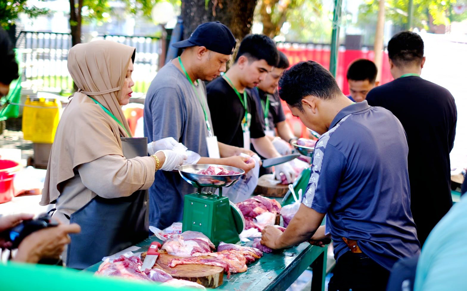 Proses penyembelihan hewan kurban dilakukan dengan memperhatikan kaidah syariat Islam serta prinsip kehigienisan. Daging sapi yang telah dipotong kemudian dikemas dan didistribusikan langsung oleh panitia kepada masyarakat yang berhak, termasuk kaum dhuafa, pekerja pelabuhan, serta mitra kerja perusahaan.