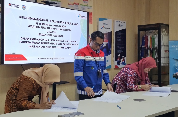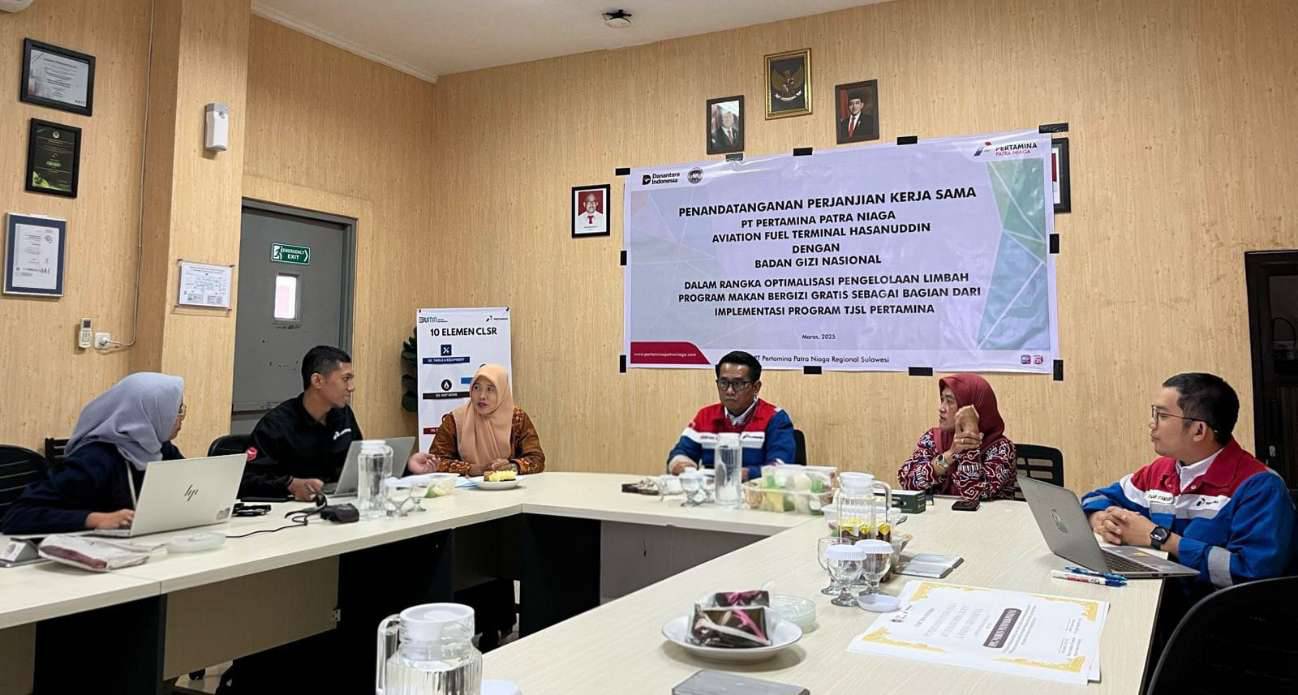 Langkah strategis ini ditandai dengan penandatanganan kerja sama antara AFT Hasanuddin dan Badan Gizi Nasional, yang berlangsung di ruang rapat AFT Hasanuddin pada Jumat (18/7). Hadir dalam acara tersebut Aviation Fuel Terminal Manager Hasanuddin Andreas Yanuar Arinawan, Direktur Wilayah III Badan Gizi Nasional Enny Indarty, S.STP, M.Si, Ketua Kelompok Ternak Laleng Kassie, Maryama, serta jajaran manajemen dan karyawan Pertamina