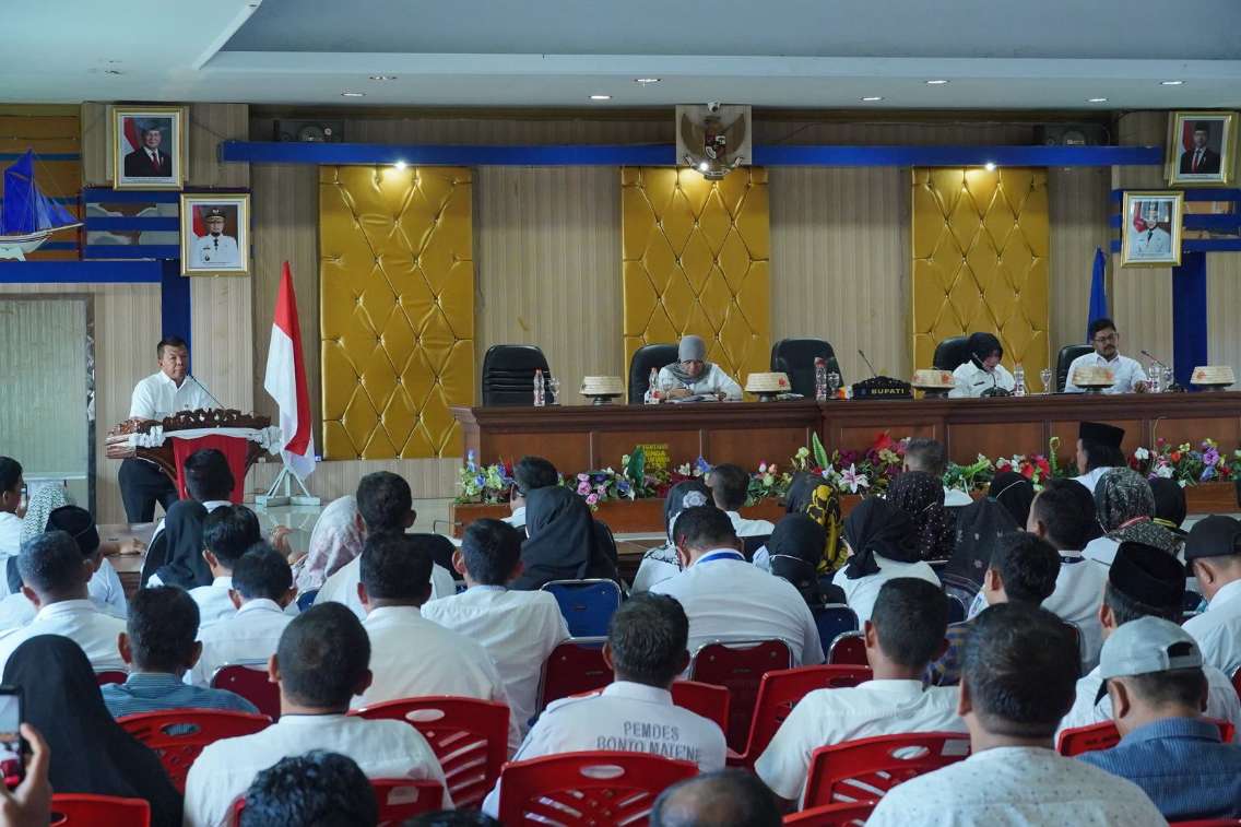 STARNEWSID.COM, BULUKUMBA — Ratusan kepala desa dan ketua badan permusyawaratan desa (BPD) mengikuti rapat koordinasi dalam rangka sinkronisasi program Pemerintah Daerah (Pemda) Bulukumba bersama pemerintah desa di sektor ketahanan pangan dan penanganan stunting di Ruang Pola Kantor Bupati Bulukumba, Rabu 16 April 2025.