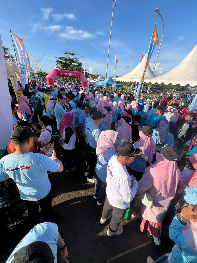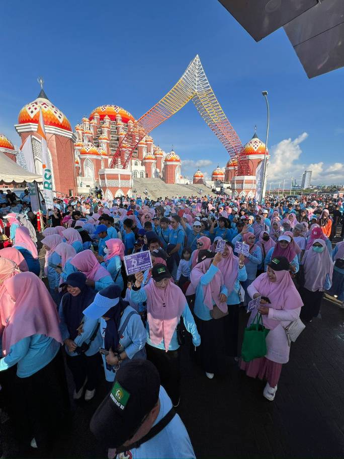 STARNEWSID.COM,MAKASSAR — Ribuan Peserta yang berasal dari keluarga Kementerian Agama Provinsi Sulawesi Selatan, Kota Makassar dan Kab. Gowa serta Balai Diklat dan Litbang Keagamaan Makassar, memadati Pelataran Masjid 99 KUbah Asmaul Husna di Kawasan Centre Point Of Indonesia (CPI) Kota Makassar, Sabtu, (4/01/2025)
