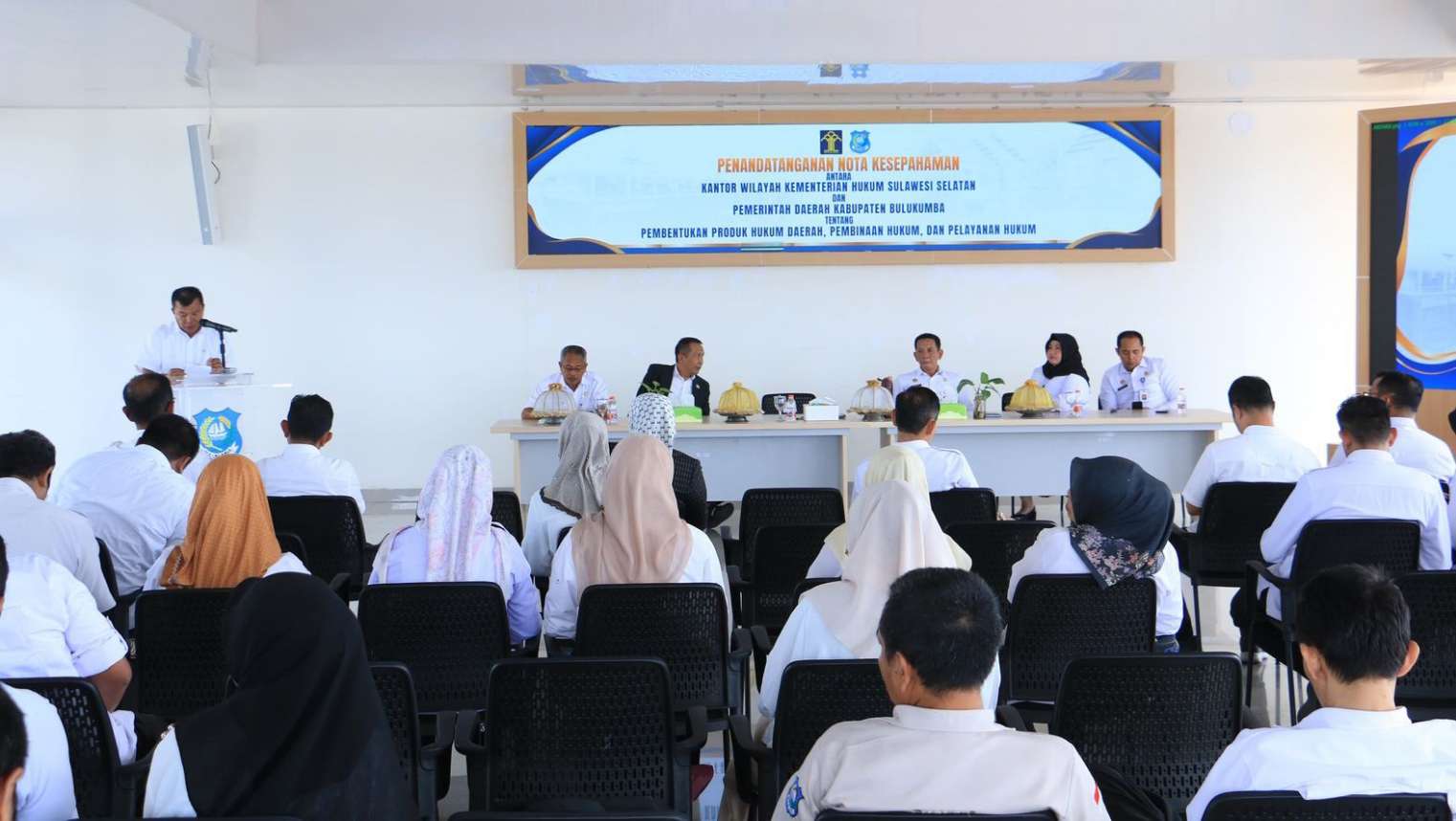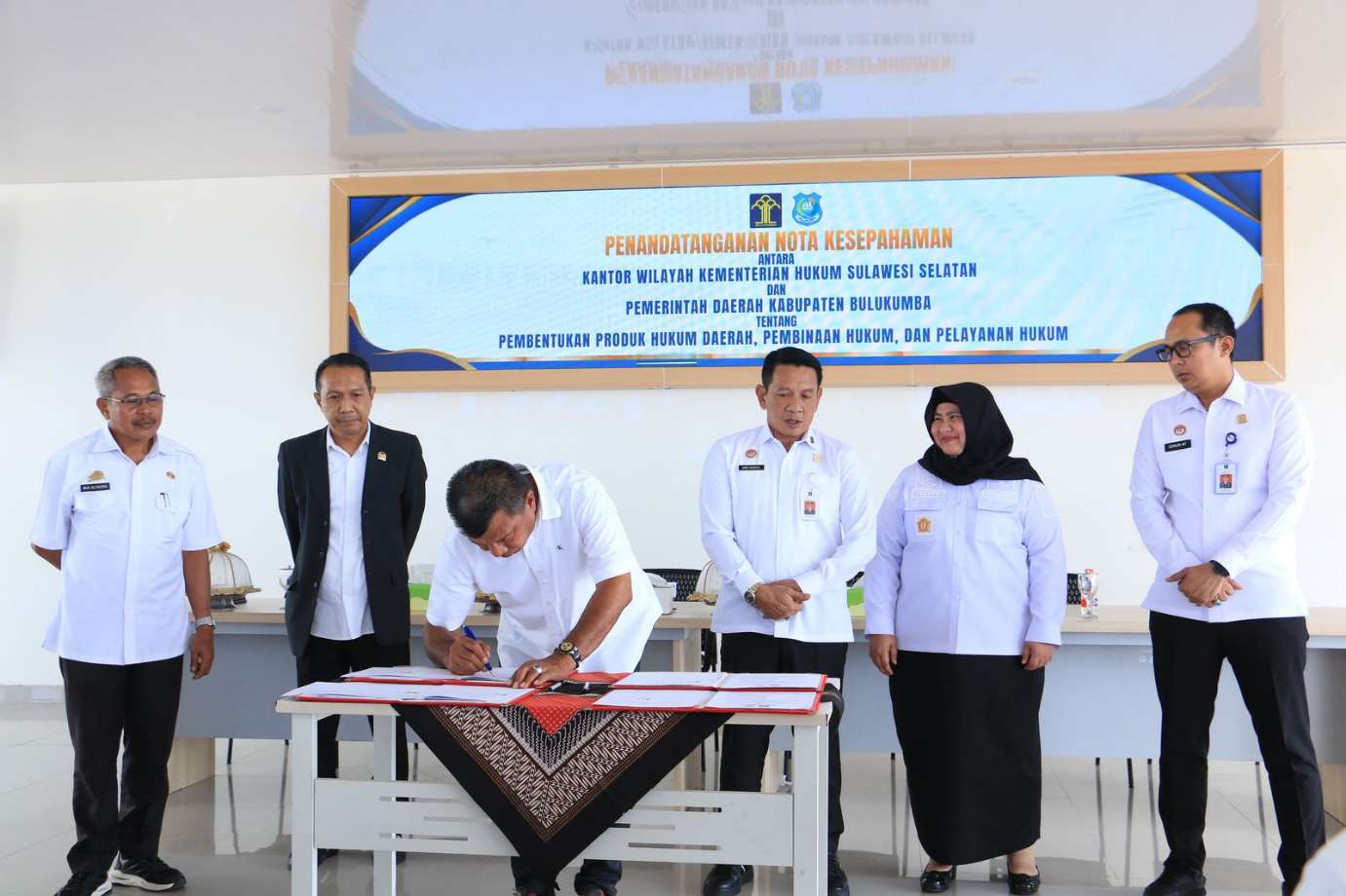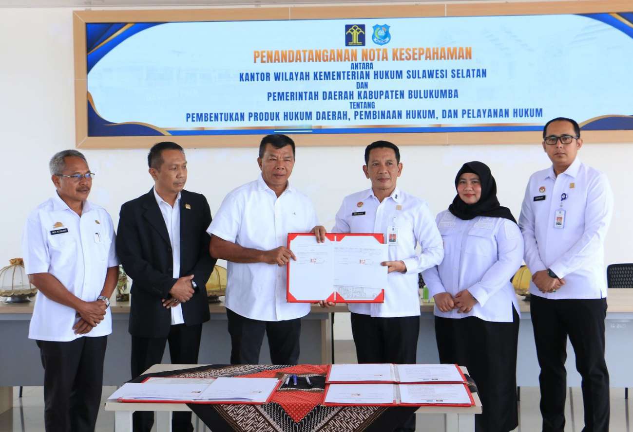 STARNEWSID.COM, BULUKUMBA — Kantor Wilayah Kementerian Hukum (Kemenkum) Sulawesi Selatan bersama Pemerintah Kabupaten (Pemkab) Bulukumba melakukan penandatanganan Nota Kesepahaman tentang Pembentukan Produk Hukum Daerah, Pembinaan Hukum dan Pelayanan Hukum.